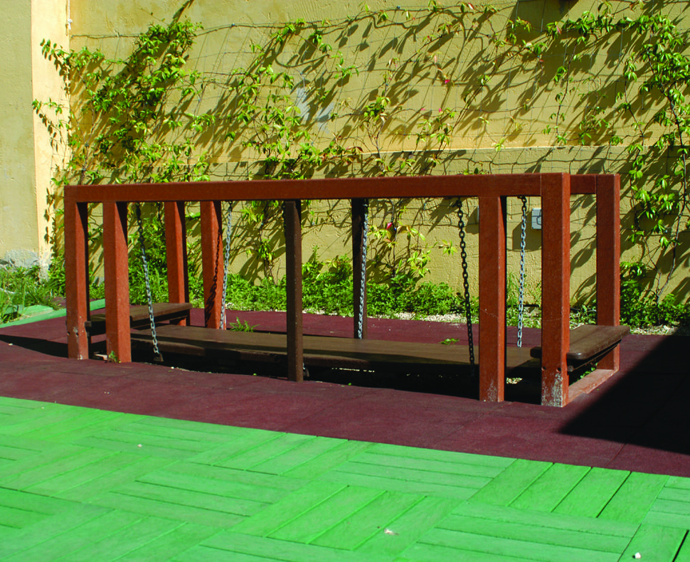 Passerella oscillante tenuta da catene in acciaio e sollevata da terra di soli 23 cm. e per questo adatta a bambini da 5 anni in su. Mobil è un divertente gioco per i bambini che simuleranno situazioni avventurose.