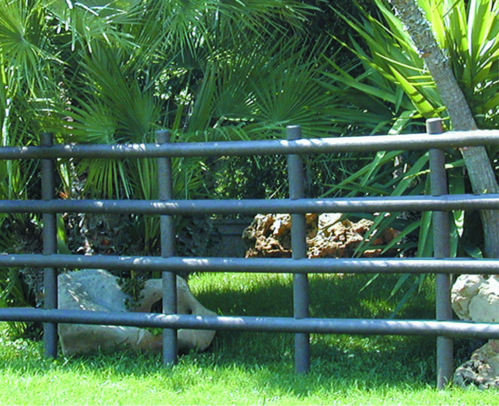 Recinzione disponibile con profilati di forma tonda o quadrata; semplice ed essenziale ricorda molto la staccionata utilizzata nei ranches.