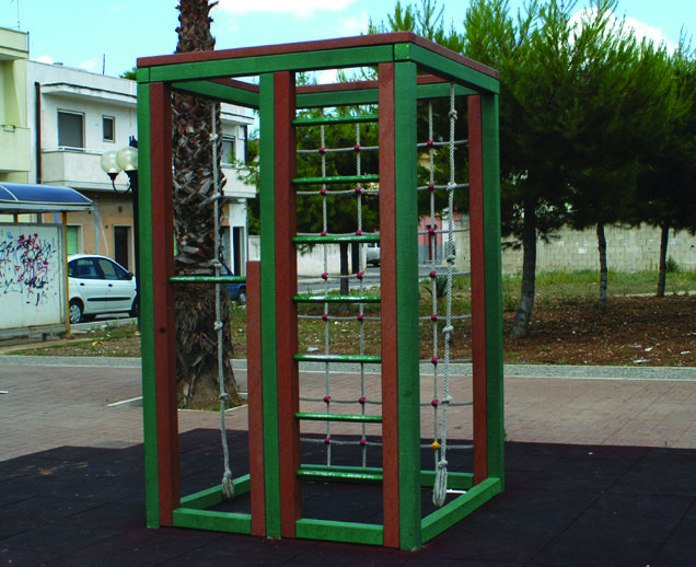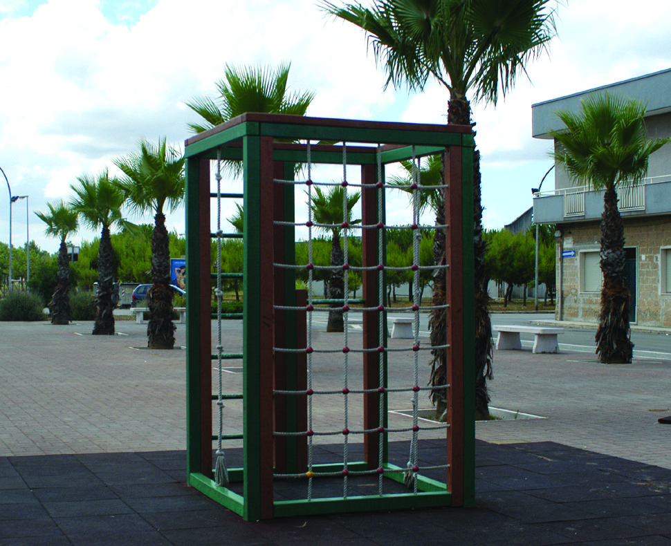 Gioco con pioli e reticolato di corde da scalare. Diverse possibilità di aggregazione con affiancamento di moduli e altalene. Solido e sicuro ha una struttura costituita da profili che sono realizzati in Strongplast – Plasmix, una miscela di materie plastiche riciclate che rende il gioco ecologico al 100% e a zero impatto ambientale. I profili sono dotati di anima in ferro.